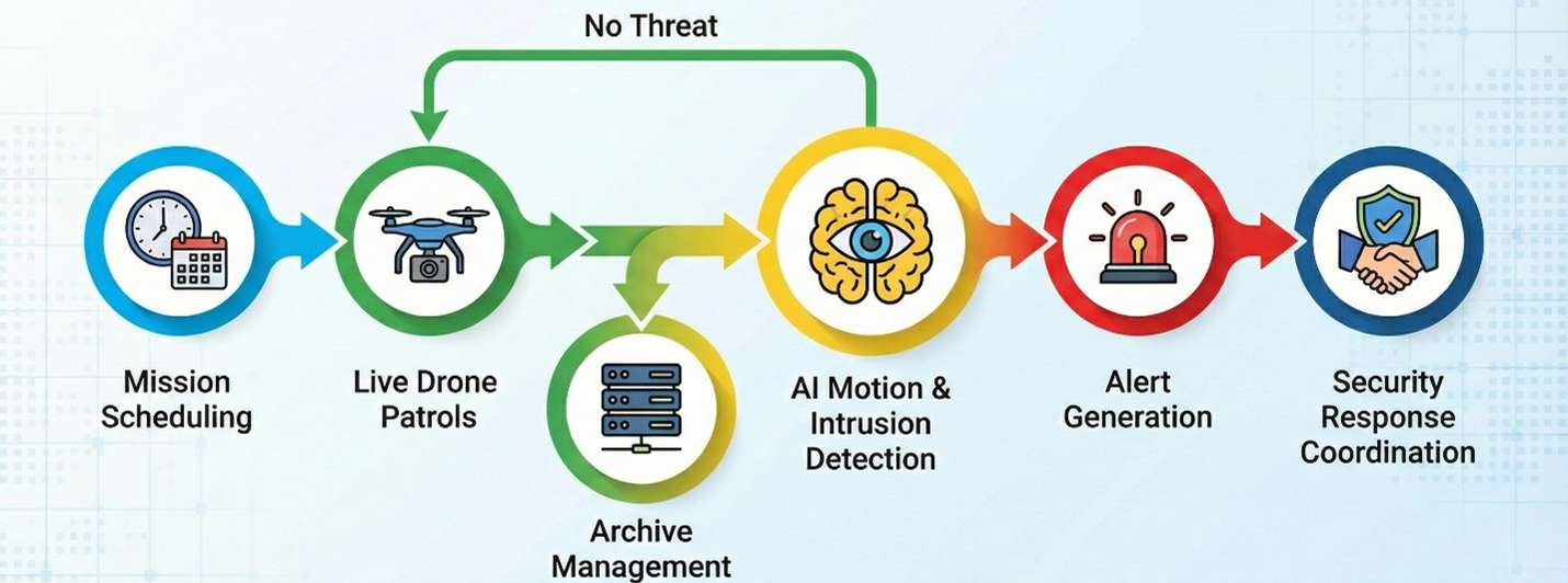 This application significantly strengthens site security operations while reducing dependence on fixed CCTV infrastructure, manual patrols, and static surveillance systems—offering flexible, mobile, and scalable security coverage.